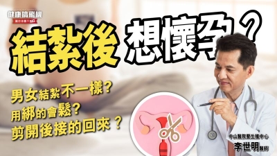 蔡伊達醫師提醒,通常結紮時間越久、輸精管阻塞的時間越長、術前術後輸精管睪丸的健康狀況、夫妻倆年齡越大,都會影響恢復的程度,因此在結紮前,一定要思考清楚。最後,蔡伊達醫師感慨說道,沒有怕老婆而結紮的男人,只有愛老婆而結紮的男人,愛要即時,幸福短暫、時光流逝、人生無常。
