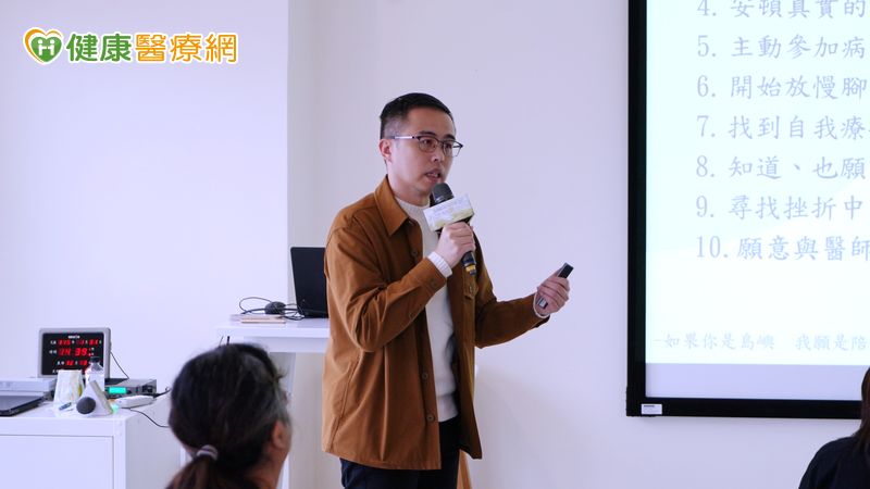 ▲台癌附設晴嶼心理諮商所所長暨諮商心理師張維宏於活動中分享心理支持的重要性,鼓勵癌友在治療與生活之間,慢慢找回內在的安定與力量。