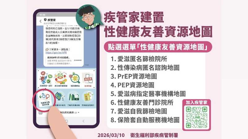 ▲疾管署建議民眾善用「性健康友善資源地圖」。(圖/疾管署提供)